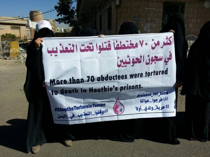 قالت رابطة أمهات المختطفين أن ” 70 مختطفا لدى ميليشيا الحوثي وصالح الانقلابية تعرضوا للقتل داخل سجونهم، جراء التعذيب الوحشي ووضعهم دروعا بشرية “.