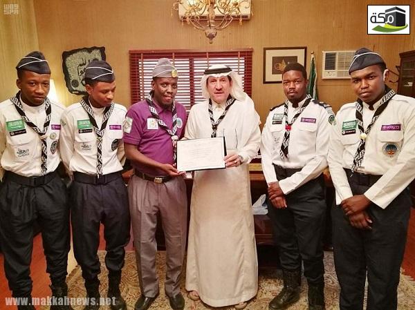 بدوره قدم القائد الكشفي للمجموعة عثمان المدني شرحا موجزاً عن دور الكشافة في مكة المكرمة والمدينة المنورة خلال موسم الحج وشهر رمضان المبارك .