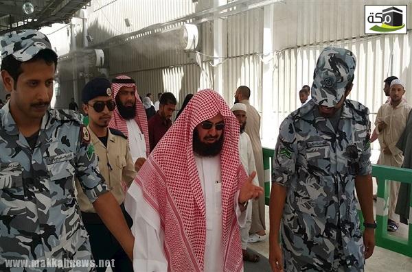 من منطلق التعاون البناء بين الرئاسة العامة لشؤون المسجد الحرام والمسجد النبوي والجهات الأمنية التقى معالي الرئيس العام الشيخ الدكتور عبدالرحمن بن عبدالعزيز السديس بأفراد قوة أمن الحج والعمرة في ساحات الحرم .