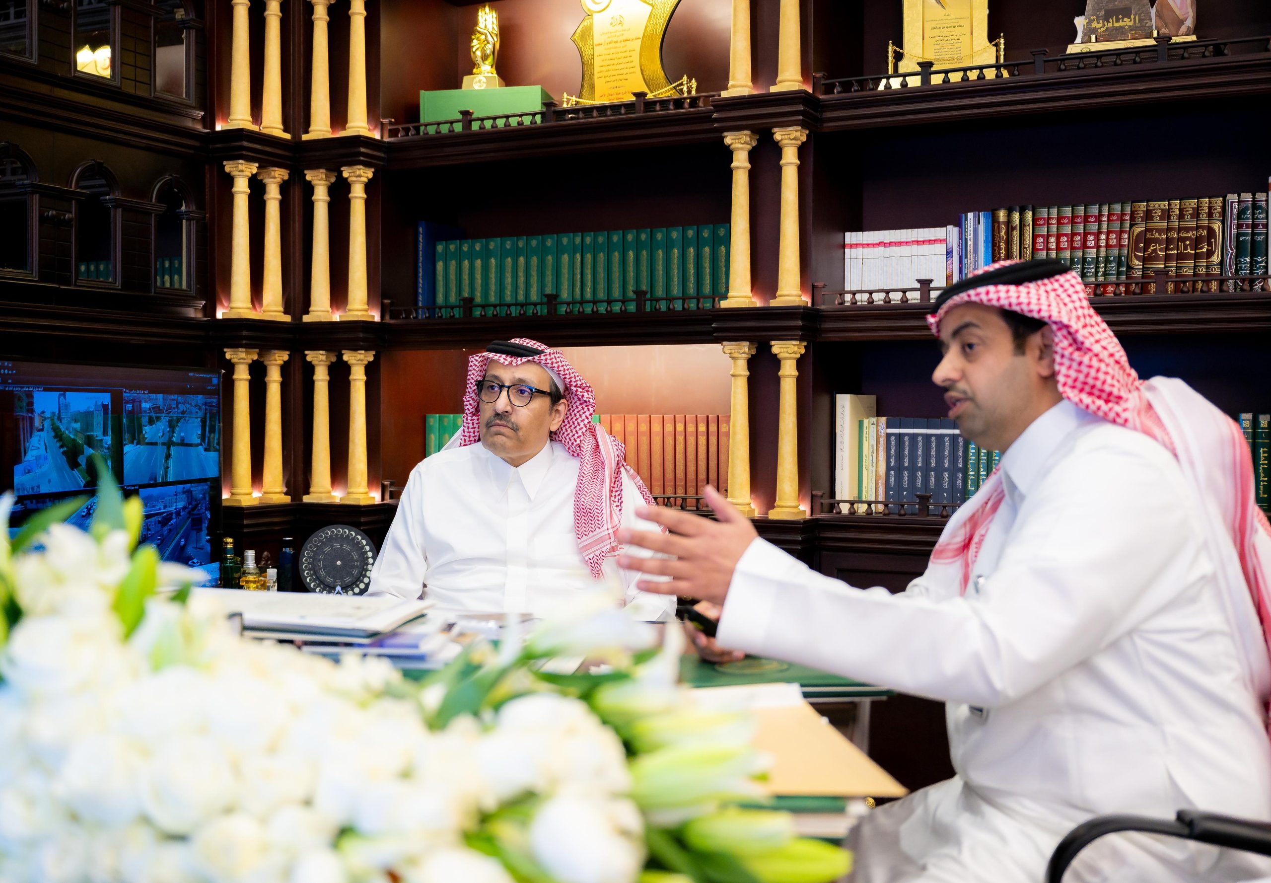 الباحة – اطّلع صاحب السمو الملكي الأمير الدكتور حسام بن سعود بن عبدالعزيز، أمير منطقة الباحة، على تقرير وكالة الشؤون التنموية بإمارة المنطقة، الذي قدّمه المهندس جديع بن حزام القحطاني، وكيل الإمارة المساعد للشؤون التنموية.