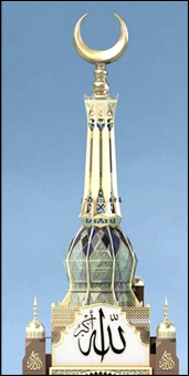 ويزين قاعدة الهلال لفظ " الله أكبر " حيث بالإمكان رؤيته من مسافة بعيدة ؛ إذ يبلغ طول حرف الألف فقط في لفظ الجلالة (الله) 23 مترا ، متوجا بالزخارف المستوحاة من التراث الإسلامي.