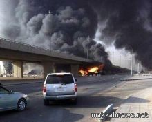 إنفجار شاحنة نقل وقود شرق الرياض صباح اليوم