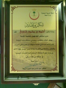 أقام [COLOR=crimson]معالي وزير الصحة الدكتور عبدالله الربيعة [/COLOR]حفل يوم الأربعاء حفل تكريم لمدراء المستشفيات بمناسبة إنتهاء موسم حج هذا العام 1430 هـ وقد حظيت مستشفي الملك فيصل ممثله في مديرها سعادة الدكتور احمد الخروبي على الدرع المقدم من معالية مزيد من التقدم وألف مبرووووك .