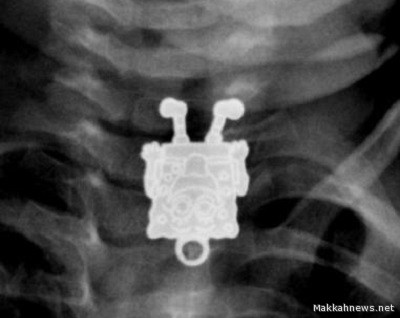 من جانبها، نشرت إحدى أخصائيات الأشعة بمستشفى الملك عبدالعزيز صوراً للحالة بأحد المواقع المتخصصة في الأشعة، مشيرة إلى أنها للوهلة الأولى بعد اطلاعها على الصورة الجانبية ظنت أن الطفل ابتلع قلماً، إلا أنها تفاجأت بعد ذلك من الصور الأمامية بأنها قلادة على شكل “سبونج بوب”.