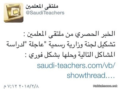 أكدت “لجنة حقوق المعلمين والمعلمات” أنه تم تشكيل لجنة وزارية “عاجلة” من قبل وزير التعليم الدكتور عزام الدخيّل، الأربعاء الماضي الموافق 15 من الشهر الحالي، وتكليفها رسمياً بدراسة مشاكل وقضايا المعلمين والمعلمات، وإيجاد حلول فورية لها.