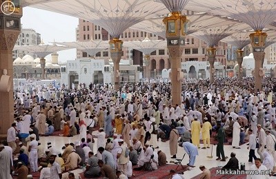 تواصل وكالة الرئاسة لشؤون المسجد النبوي جهودها ضمن (حملة خدمة الحاج والزائر وسام فخر لنا) لتغطية ساحات المسجد النبوي بالمظلات من أجل راحة المصلين وتشغيل مراوح الرذاذ بأعمدة هذه المظلات التي تؤدي دورا مهما في عملية تلطيف الجو عبر الرذاذ الذي تنفثه في أرجاء الساحات المحيطة بالمسجد النبوي.