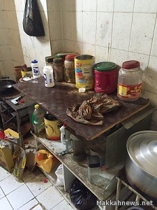وقد تمت مداهمة الموقع المشار اليه ، وعُـثِرَ بداخله على كميات كبيرة من المواد الغذائية المخزنة بطرق عشوائية ، حيث بلغت المصادرات حوالي (200) كيلو دقيق وكمية من العجين ، كما تمت مصادرة واتلاف (40) كرتون مياه مخزن بطرق عشوائيه ومعرض لاشعة الشمس ، اضافة الى عدد من اسطوانات الغاز والقدور الكبيرة وادوات الطبخ وغيرها .