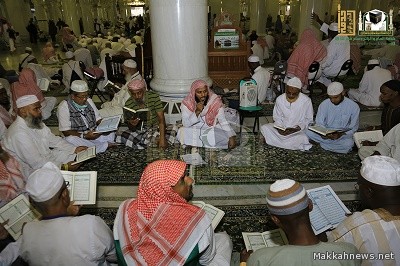 وبين الشيخ السيلاني أنه تم عمل دورة تأهيلية لمعلمي حلقات القران بعنوان ( تدارس القران الكريم ) واستفاد منها (34) معلماً، مشيراً إلى أن حلقات تعليم القران الكريم داخل أروقة المسجد الحرام بلغت (400) حلقة يدرس بها نحو (80) معلماً ومعلمة وتنظم هذه الحلقات على فترتين صباحية ومسائية، وأن عدد المستفيدين من برنامج تصحيح التلاوة وحفظ وتحسين سورة الفاتحة بلغ (115.122) مستفيداً من الرجال و(30.082) مستفيدة من النساء خلال موسم الحج .