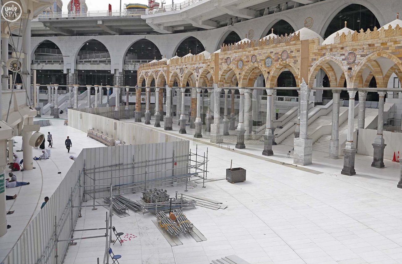 وأكد القرشي أن استئناف أعمال إعادة الأروقة بدأ بعد توريد وتركيب جميع الأنظمة للأعمال الكهروميكانيكية, ووحدات التكييف المركزية, والتهوية, والإنارة, والنجف, ونظام الصوت, والساعات، وكاميرات المراقبة بشكل نهائي إضافة لاستكمال تنفيذ عناصر الحركة الرأسية من مصاعد, وسلالم كهربائية, وتنفيذ مشارب مياه زمزم والمواضئ كافة.