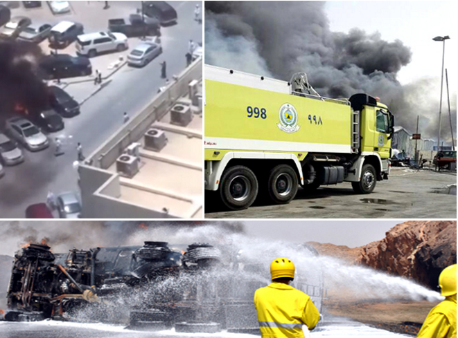 وأوضح الدفاع المدني في جدة أن الحادثة وقعت في حوش على مساحة 3.600 متر مربع ، ويحتوي على 15 شاحنة وقود ، احترق منها أربع شاحنات،
