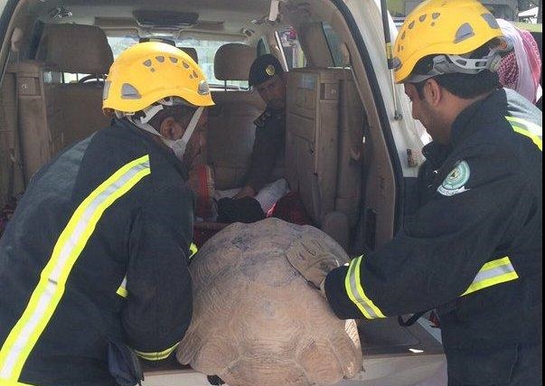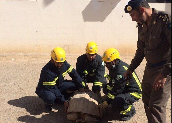 وأوضح الدفاع المدني عبر حسابه الرسمي على تويتر أن مدني وادي الدواسر باشر بلاغاً عن مشاهدة حيوان غريب بالقرب من أحد المزارع واتضح أنه سلحفاة كبيرة مغمورة بالطين.
