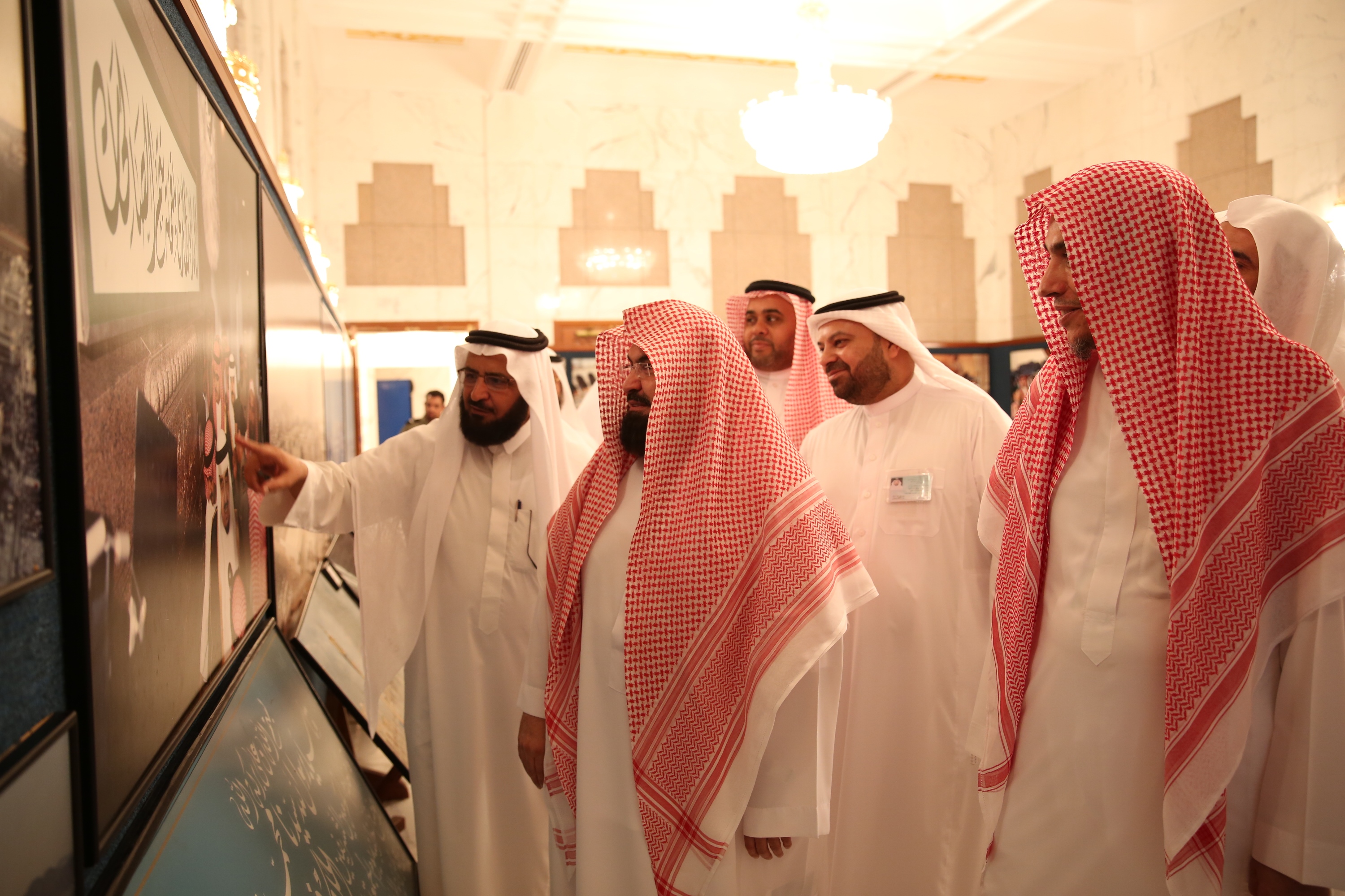 واستمع الى شرح موجز عن ما يقومه به المعرض من استقبال وفود الزوار والحجاج والشرح لهم عن الخدمات التي تقدمها حكومة المملكة العربية السعودية في التوسعات في المسجد النبوي الشريف بالإضافة الى ما يحوي المعرض من صور وعرض مرئي تعني بمراحل اكتمال الخدمات المقدمة لزائري المسجد النبوي الشريف.