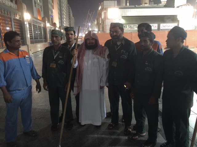 تفقد معالي الرئيس العام لشؤون المسجد الحرام والمسجد النبوي الشيخ الدكتور عبدالرحمن بن عبدالعزيز السديس أمس ساحات المسجد النبوي , حيث وقوف على أعمال الخدمات وتابع عملية اكتمالها في جميع المواقع بالمسجد النبوي كما التقى عمال الخدمات واستمع إلى احتياجاتهم ومقترحاتهم .