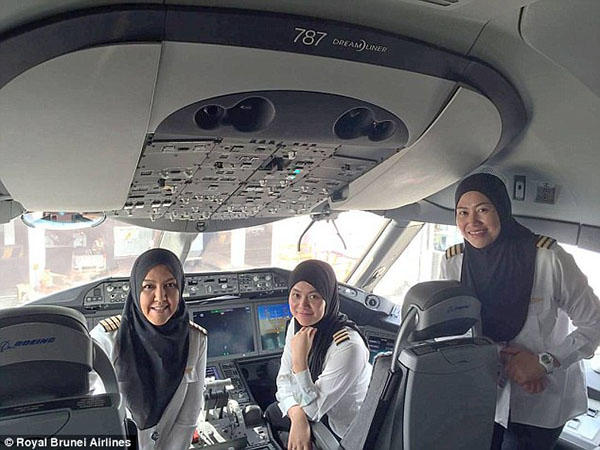 الفريق النسائي قاد طائرة بوينج 787 في الرحلة من دولة بروناي الآسيويّة إلى جدّة وعيّنتهن شركة الطيران بروناي إيرلاينز في فبراير 24 تزامنًا مع اليوم الوطني هناك وعيد الاستقلال وفقا لموقع عين اليوم.