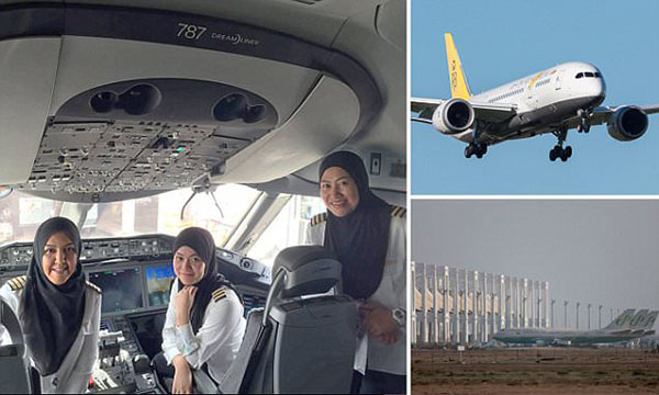 وقالت قائد الطائرة شريفة زارينا ومعها مساعدتان هما ساريانا نوردين وناديا خاشيام إنهن أصبحن أول امرأة (كابتن) لخطوط جوية في جنوب شرق آسيا.