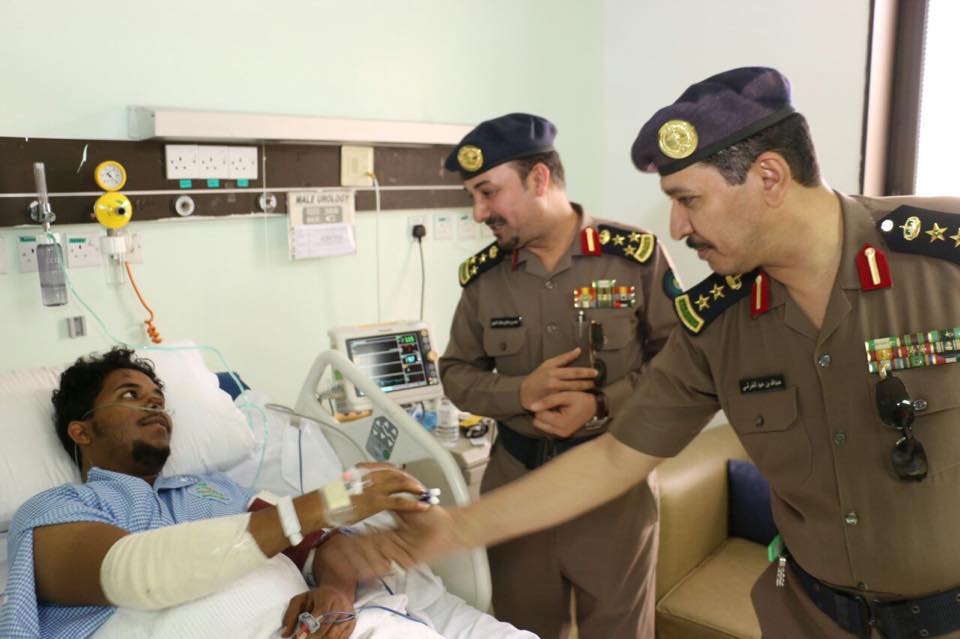 اللواء المطرفي يزور منسوبي مدني مكة المنومين إثر تعرضهم لحادث مروري