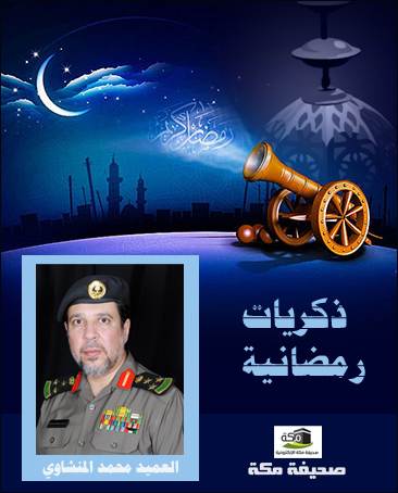 في شهر رمضان المبارك يكون لكل منا ذكرياته في هذا الشهر الفضيل ، وهى ذكريات ترتبط بالماضي لكنها تطبع الحاضر بذكرى رائعة لا تنسى مهما مرت السنوات . مكة تستضيف طوال شهر رمضان المبارك نخبة من أبناء المجتمع الذين يرون ذكرياتهم في هذا الشهر الفضيل . ومن هؤلاء النخبة المستشار الأمني عميد م/ محمد عبدالله منشاوي ، الذي يقول إن شهر رمضان له مكانة واسعة في القلب ، و روحانية خاصة وذكريات جميلة ترتبط به