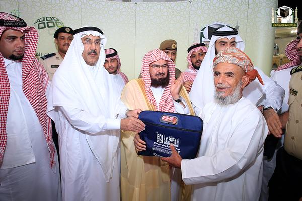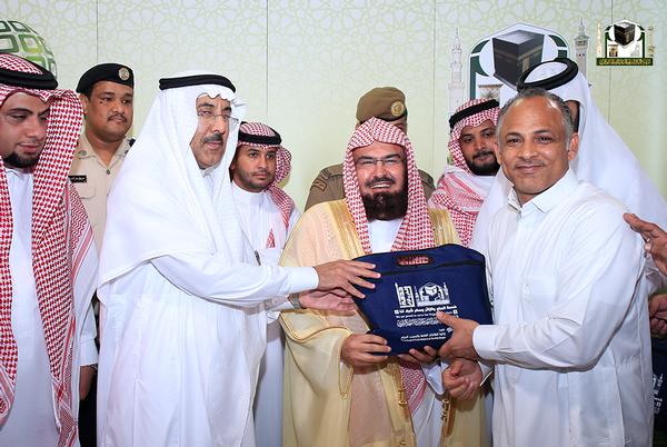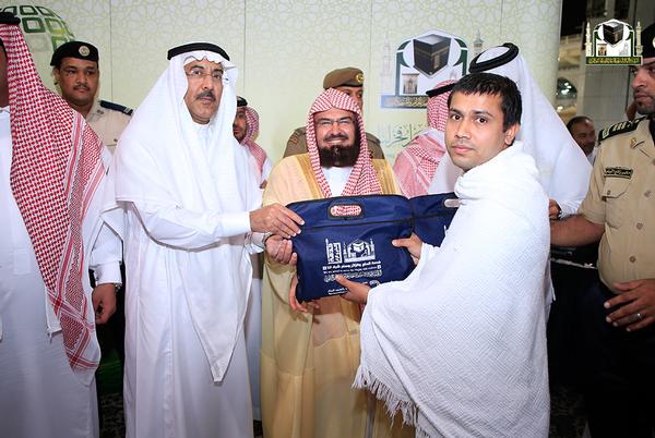 بعد تدشين صاحب السمو الملكي الأمير خالد الفيصل بن عبدالعزيز مستشار خادم الحرمين الشريفين أمير منطقة مكة المكرمة رئيس لجنة الحج المركزية الحفل الذي أقامته الرئاسة العامة لشؤون المسجد الحرام والمسجد النبوي بمناسبة تدشين حملة : (خدمة الحاج والزائر وسام شرف لنا) في موسمها الرابع, قام معالي الرئيس العام لشؤون المسجد الحرام والمسجد النبوي الشيخ الدكتور عبدالرحمن بن عبدالعزيز السديس ويشاركه سعادة قائد قوة أمن المسجد الحرام اللواء محمد بن وصل الأحمديبإهداء الزوار والعمار والحجاج حقائب حملة “خدمة الحاج والزائر وسام شرف لنا” وذلك بالتعاون والتنسيق مع إدارة العلاقات العامة بالمسجد الحرام .