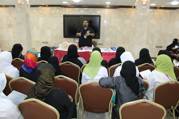 وأوضحت اختصاصية التمريض ومدربة الإنعاش القلبي الرئوي والحوادث والإصابات فايزة الدوسري أن الدورة المعتمدة بواقع 24 ساعه تعليم طبي من قبل الهيئة السعودية للتخصصات الصحية، ركزت في خطتها التدريبية الخاصة بالحج على علاج حالات الإجهاد الحراري وضربات الشمس والتعامل مع الحالات في أقسام الطوارئ والرعاية الحرجة بالإضافة إلى تطبيق احتياطات مكافحة انتشار العدوى وكذلك الأوبئة والأمراض والإصابات الأكثر شيوعًا في موسم الحج والإجراءات الوقائية للتعامل مع الحالات الأمراض المعدية في موسم الحج.