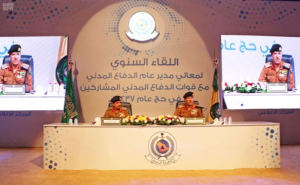 وشدد معالي الفريق العمرو على أهمية تكامل استعدادات قوات الدفاع المدني المشاركة في مهمة الحج وجاهزيتها الكاملة للتعامل مع جميع المخاطر المحتملة من حيث القوى البشرية والآلية المؤهلة والمتطورة وكذلك فاعلية آليات التنسيق بين قيادة قوات الدفاع المدني بالحج والجهات الحكومية المشاركة في تنفيذ الخطة.
