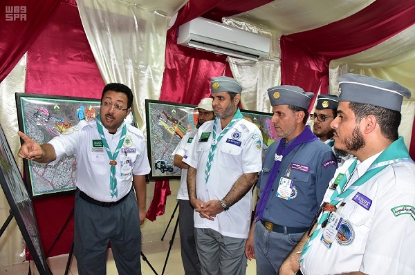 وكان في استقباله لدى وصوله معسكر عرفات المشرف العام على المعسكرات بالمملكة الدكتور عبدالله بن سليمان الفهد، والمشرف على معسكرات مكة المكرمة والمشاعر محمد مهدي الحارثي، وقائد عام المعسكرات بمكة المكرمة والمشاعر الدكتور صالح بن رجاء الحربي، وقادة المعسكرات الفرعية، حيث تجول معاليه على مقار لجنة الخرائط والأدلة الإرشادية والمجموعات، وشؤون المعسكرات، وتقنية المعلومات.