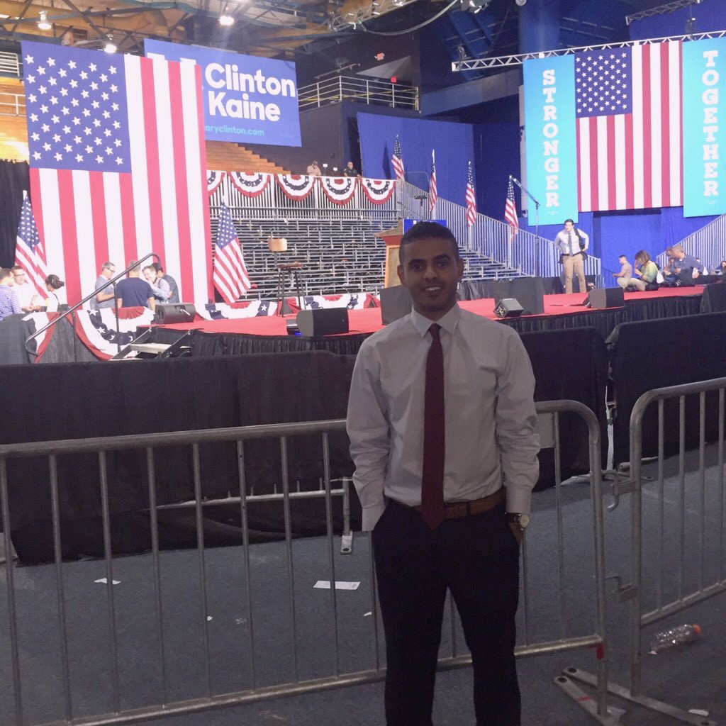 وتابع: “بعد التواصل مع أكثر من شخص مسؤول وسياسي، قدمت السيرة الذاتية للحزب الديمقراطي في ولاية فلوريدا، ثم تم إجراء معي 3 مقابلات شخصية، وطُلب مني أخذ اختبار وعمل جدول تنظيمي للحملة”.