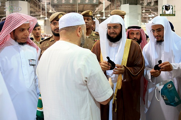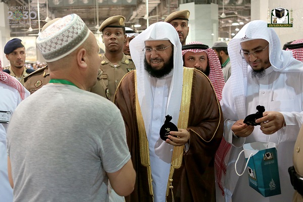 قام فضيلة الشيخ خالد بن علي الغامدي إمام وخطيب المسجد الحرام , بتقديم الهدايا لضيوف الرحمن , ضمن حملة (خدمة الحاج والزائر وسام شرف لنا) خلال موسمها الرابع ، ويأتي ذلك ضمن منظومة الخدمات التي تهدف إلى الاحتفاء بمرتادي البيت العتيق وإكرامهم وإظهار الحفاوة لهم.
