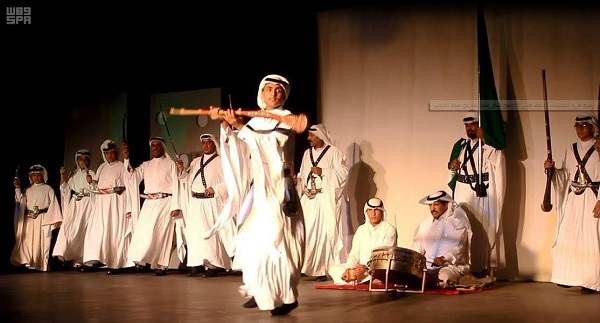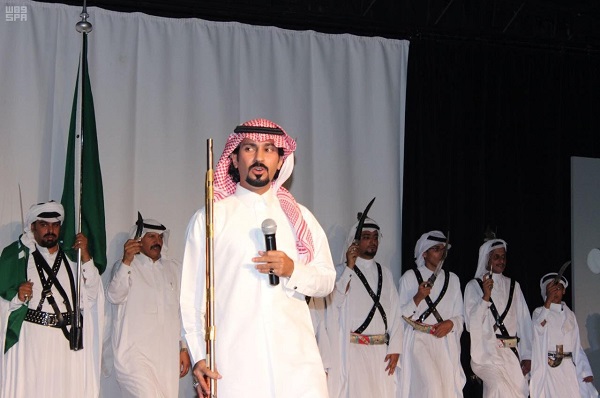 وتضمّن الحفل عدد من الأهازيج الشعبية التي خصصت في الوطن ، قدّمها مجموعة من أبرز المنشدين بالمحافظة ، وذلك بمشاركة الجمهور الغفير الذي احتضنته قاعة فهد ردة الحارثي للفنون ، فيما قدّمت فرقة بني يوسف للفنون الشعبية لون العرضة الذي اشتهرت به المحافظة احتفاءً بهذه المناسبة .