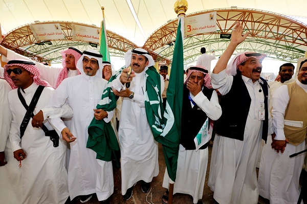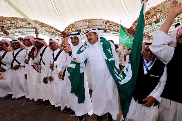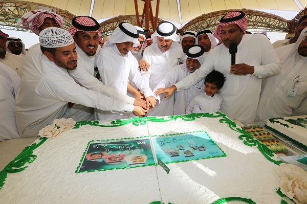 احتفى مزاد مهرجان الأحساء للنخيل والتمور ( للتمور وطن 2016 ) الذي تنظمه أمانة الأحساء مع شركائها تحت عنوان ( خلاصنا كهرمان ) بمدينة الملك عبدالله للتمور ، باليوم الوطني بعد أن اكتست المدينة بالأعلام الخضراء وصور خادم الحرمين الشريفين الملك سلمان بن عبدالعزيز آل سعود – حفظه الله -، كما تناغمت أصوات العرضة السعودية وسط المزاد من ساعات الصباح الباكرة مرددة الأهازيج الوطنية التي شارك فيها جملة من المزارعين والتجار ومرتادي المزاد, بحضور أمين الأحساء المهندس عادل بن محمد الملحم .