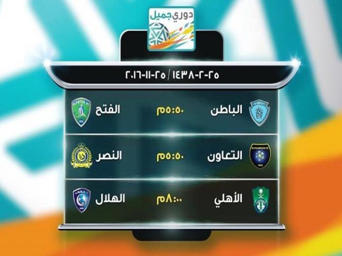 ومن جهته يستضيف التعاون نظيره النصر، وستكون صدارة النصر لدوري جميل أمام اختبار صعب أمام التعاون الساعي إلى تحقيق نتيجة إيجابية لتحسين وضعه في الدوري. ويدخل أصحاب الأرض اللقاء وفي جعبتهم تسع نقاط في المركز العاشر، فيما يتقاسم النصر الصدارة مع الهلال ولكل منهما 21 نقطة.