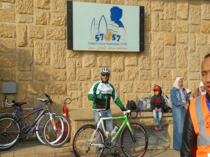 وانطلقت الفعالية التي مثل المملكة فيها الدراج أحمد آل صوفان, وبمشاركة أكثر من 350 دراجا يمثلون الدول العربية، من أمام مقر جامعة الدول العربية بمصر وامتدت لمسافة 8 كيلومترات باتجاه مستشفى سرطان الأطفال 57357، الذي شهد العديد من الفعاليات ما بين تبرع بالدم واستشارات ومسرح للطفل قدم فيه فقرات ترفيهية هادفة موجهة للأطفال إضافة إلى فقرات فلكلورية شعبية.