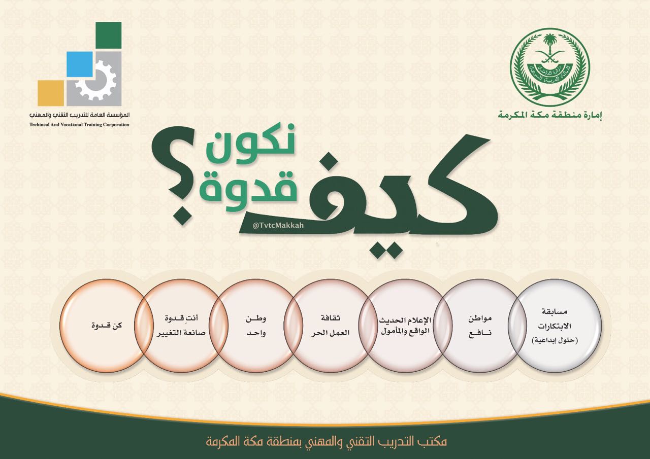 يذكر أن الإدارة العامة للتدريب التقني والمهني بمنطقة مكة المكرمة كانت سباقة للاستفادة من هذا المشروع الذي يعتبر عصرياً من نوعه ، يقيس الهدف ويتابع التنفيذ ، حيث قدمت عدة مبادرات واقعية التحقيق لتنفيذها في الكليات التقنية للبنين والبنات وكلية الاتصالات والمعاهد الصناعية الثانوية ومعاهد التدريب الأهلي حيث شملت تلك المبادرات : كن قدوة ، وطن واحد ، مسابقة الابتكارات “حلول ابداعية” ، نشر ثقافة العمل الحر ، كوني قدوة ، “الاعلام الحديث : الواقع والمأمول” ، صانعة التغيير .
