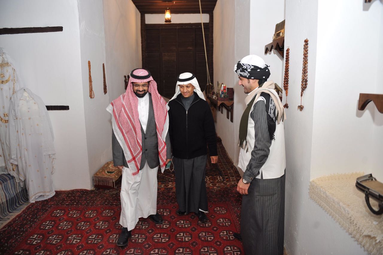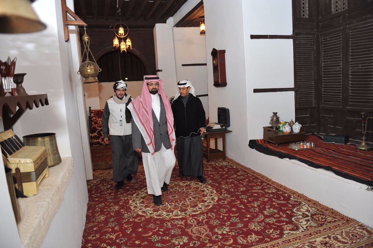 وقد تجول الدكتور الشريف في أرجاء الجناح مطلعاً على محتوياته التي تضم عرضاً تاريخيا لمراحل التطور وإبراز للتراث العريق الذي تتميز به هذه المدينة المقدسه والذي أكسبها بعداً وجدانياً في نفوس كافة مسلمي العالم ، وما يعكسه الجناح من بساطة سكان تلك المنطقة وحرفهم اليدوية وأكلاتهم الشعبية وما يحويه من أقسام تعرف بتراثهم العريق. واستمع الى شرحاً مفصلا لما يحتويه البيت من أقسام وأثاث وفرش وملابس وأدوات أثرية قديمة