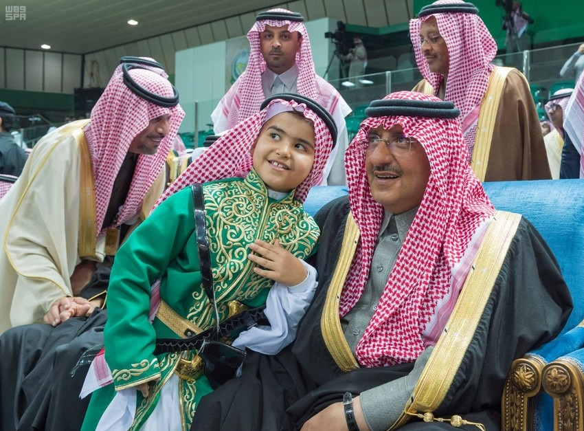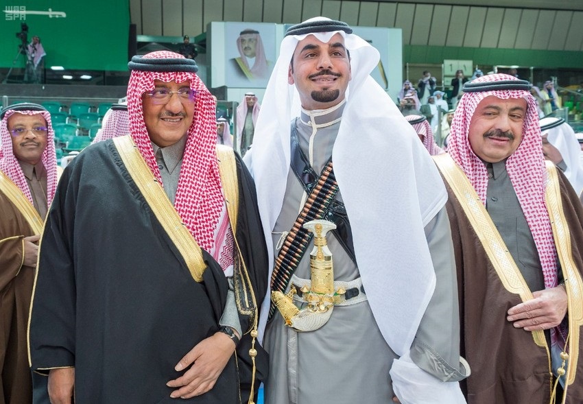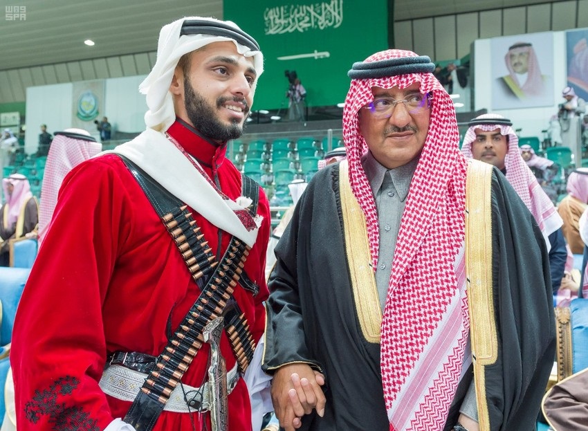 ولدى وصول خادم الحرمين الشريفين مقر الحفل بالصالات الرياضية يرافقه صاحب السمو الملكي الأمير سلطان بن سلمان بن عبدالعزيز رئيس الهيئة العامة للسياحة والتراث الوطني، وصاحب السمو الملكي الأمير سعود بن سلمان بن عبدالعزيز، كان في استقبال الملك المفدى ـ أيده الله ـ صاحب السمو الملكي الأمير فيصل بن بندر بن عبدالعزيز أمير منطقة الرياض، وصاحب السمو الملكي الأمير متعب بن عبدالله بن عبدالعزيز وزير الحرس الوطني رئيس اللجنة العليا للمهرجان الوطني للتراث والثقافة، وصاحب السمو الملكي الأمير محمد بن نايف بن عبدالعزيز ولي العهد نائب رئيس مجلس الوزراء وزير الداخلية، وصاحب السمو الملكي الأمير عبدالله بن مساعد بن عبدالعزيز رئيس الهيئة العامة للرياضة، وصاحب السمو الملكي الأمير عبدالله بن متعب بن عبدالله بن عبدالعزيز، وصاحب السمو الملكي الأمير سعد بن متعب بن عبدالله بن عبدالعزيز، ومعالي نائب وزير الحرس الوطني نائب رئيس اللجنة العليا للمهرجان الأستاذ عبدالمحسن بن عبدالعزيز التويجري.