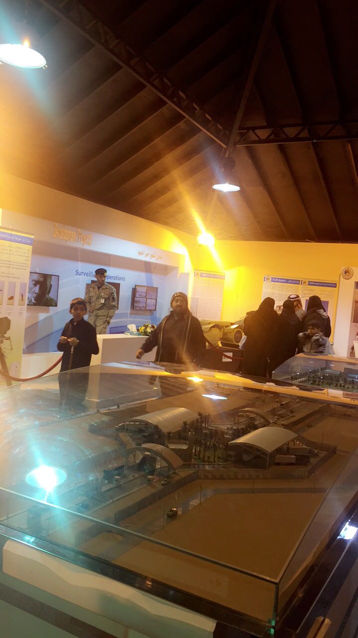 وأبان أن مقر المديرية العامة لحرس الحدود بالجنادرية يضم عدداً من الأجنحة التي تشتمل على بعض من الصور والمقتنيات والعروض المرئية التي تحكي شواهد و تاريخ حرس الحدود من ضمنها : جناح لعرض المضبوطات والوسائل الرقابية وإحصائيات لما تم ضبطه ، وجناح يعرض المشاريع التطويرية لحرس الحدود والتي تبين ما وصل إليه الجهاز من تقدم في استخدام التقنيات الحديثة ودورها في إحكام السيطرة على حدود المملكة ، إضافة لجناح البحث والإنقاذ والذي يقدم رسالة توعوية بالسلامة البحرية لأطياف المجتمع كافة وللنساء والأطفال خاصة عبر اللجنة النسائية للسلامة البحرية من أجل تحقيق أعلى معدلات السلامة البحرية التي نسعى لها جميعاً بعد توفيق الله عز وجل ، كما يشتمل المعرض على جناح للأسلحة النوعية والحديثة مقرونة بعرض مرئي لها . كما أن حرس الحدود لم ينس رجاله الأوفياء الذين بذلوا أرواحهم فداء للوطن ومقدساته من جناح يحتوي على صور ومعلومات عن الشهداء تغمدهم الله برحمته ، إضافة لعدد من الأجنحة الأخرى (جناح نشأة وتطور حرس الحدود – جناح الشؤون الطبية – جناح الملبوسات – جناح الأسلحة القديمة – جناح القوة البرية الخاصة – جناح القوة البحرية الخاصة – جناح أكاديمية محمد بن نايف للعلوم والدراسات الأمنية البحرية – جناح النظم والمراقبة – جناح عرض الآليات القديمة والحديثة للسيارات).