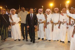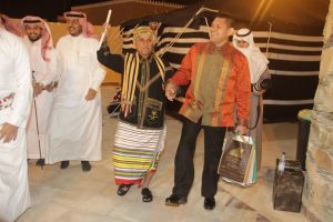 وشارك الوفد في نهاية جولتهم مع فرقة رجال ألمع التي قدمت فلكلور شعبي وعدد من الفنون الشعبية كالعزف على المزمار والدمة والخطوة.