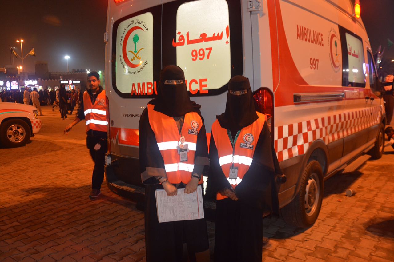 وأوضح المتحدث الرسمي لهيئة الهلال الأحمر السعودي بمنطقة الرياض عبد الله العتيبي، في تصريح لوكالة الأنباء السعودية، أن المتطوعات يواصلن العمل طيلة أيام المهرجان، ومقسمات لـ8 فرق في أجنحة مناطق المملكة وداخل القرية النسائية التراثية. وقد حرص المهرجان على توفير الكادر النسائي نظرا لكبر مساحة القرية وشعور المسعفين من الرجال بالحرج أثناء إسعاف السيدات، وهي ليست المشاركة الأولى لهن في المهرجان، لافتا إلى أن العمل التطوعي أصبح ظاهرة اجتماعية تحقق الترابط والتآخي بين أفراد المجتمع.
