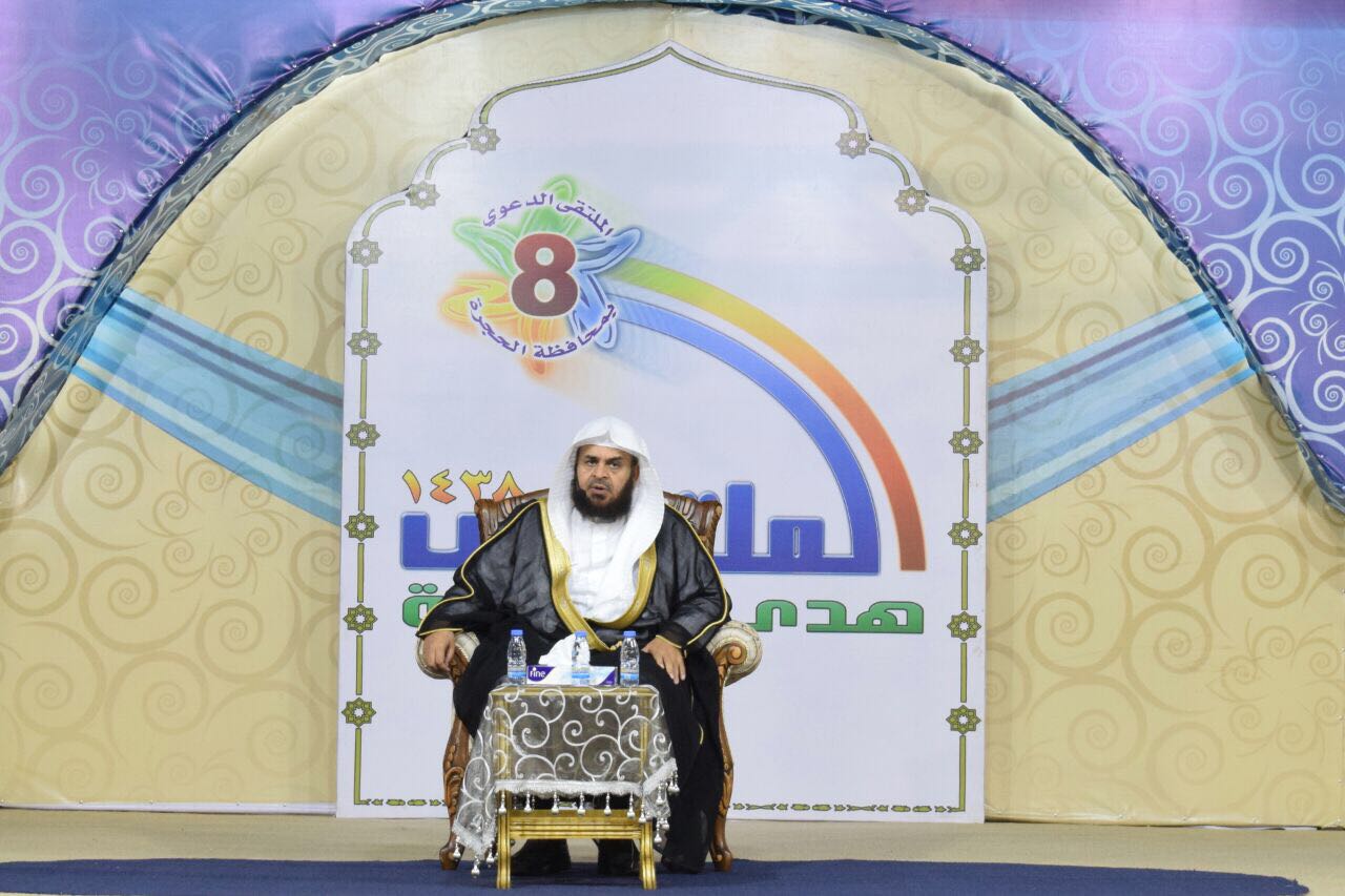 ضمن فعاليات اليوم الخامس في الملتقى الدعوي الثامن بالحجرة ( هدى وهداية ) ألقى الشيخ ” عبيدالله القحطاني ” الداعية المعروف وعضو الدعوة في المدينة المنورة محاضرة بعنوان ( حماية الأسرة من الانحرافات ) والذي أكد فيها على ركائز ثلاث أولها ضرورة قرب الوالدين من ابنائهم وبناتهم وجعل وقت مخصص لهم بشكل يومي أو اسبوعي للقائهم والاستماع لهم وحل جميع مشاكلهم كما كان يفعل رسولنا الكريم .