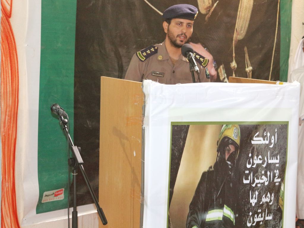 بعد ذلك أقيم حفل خطابي بهذه المناسبة بدأ بالقرآن الكريم . تلاه كلمة لمدير الدفاع المدني . النقيب . حسن الزهراني رحب فيها بمحافظ الحجرة وجميع الحاضرين واشار « إن هذا الاحتفال يأتي تزامناً مع اليوم العالمي للدفاع المدني والموافق الاول من مارس كل عام وماتقوم به اجهزة الدفاع المدني في هذا العصر من جهود عظيمة ومتواصله للحفاظ على أمن وسلامة المجتمعات الانسانيه من خطر الكوارث الطبيعيه والبشريه ، ولما يجسد حرص سمو أمير المنطقة على متابعته الدائمة للجهود الميدانية والتوعوية التي تقدمها مديرية الدفاع المدني بمنطقة الباحة وإدارة الدفاع المدني بمحافظة الحجرة . ودعم واهتمام سموه بتطوير وتحديث قدرات الدفاع المدني وتوجيهاته بضرورة استثمار هذه المناسبة لنشر ثقافة السلامة بين مكونات المجتمع كافة ، لأداء مهامه الوطنية والإنسانية في الحفاظ على مكتسبات الوطن وسلامة أبنائه» .