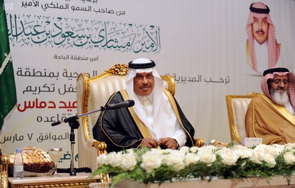 حضر صاحب السمو الملكي الأمير مشاري بن سعود بن عبد العزيز أمير منطقة الباحة أمس ، الحفل الذي أقامته المديرية العامة للشؤون الصحية بالمنطقة للدكتور علي بن سعيد دماس بمناسبة إنتهاء خدمته التي امتدت 35 عاما ، وذلك بقاعة التعليم بمحافظة المخواة.