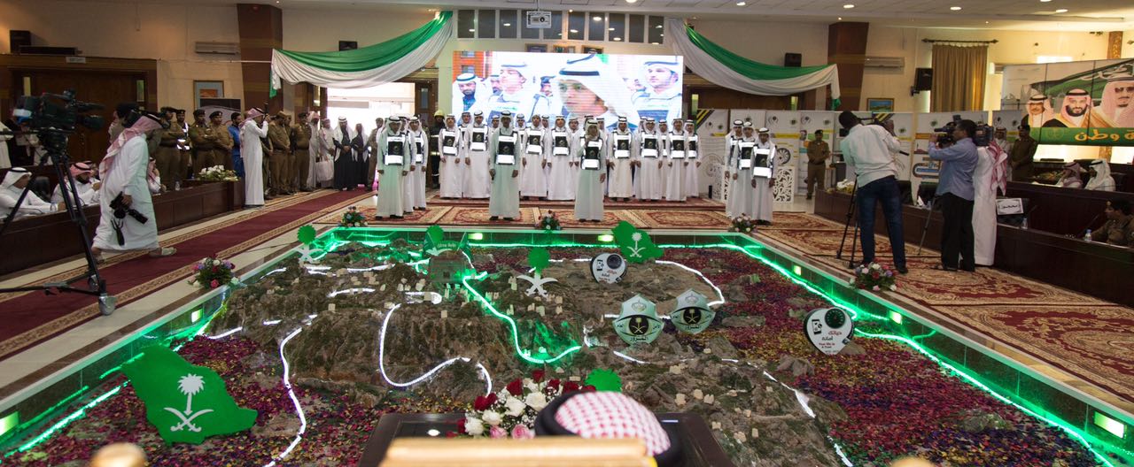 حضر الحفل أمين منطقة الباحة المهندس ” محمد بن مبارك المجلي ” ومدير شرطة المنطقة اللواء ” علي آل هادي ” وقادة القطاعات الأمنية وعدد من المسئولين بالمنطقة .