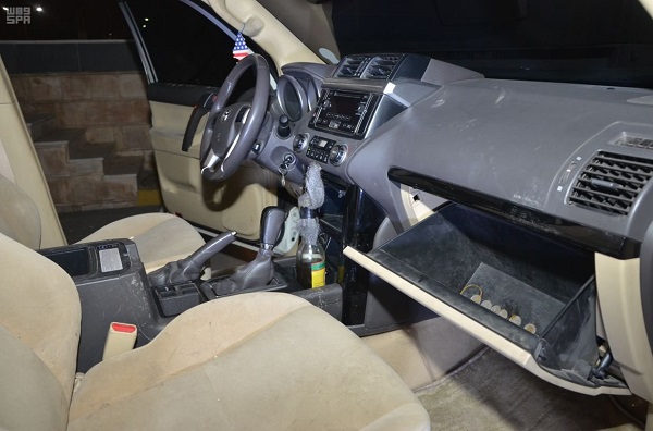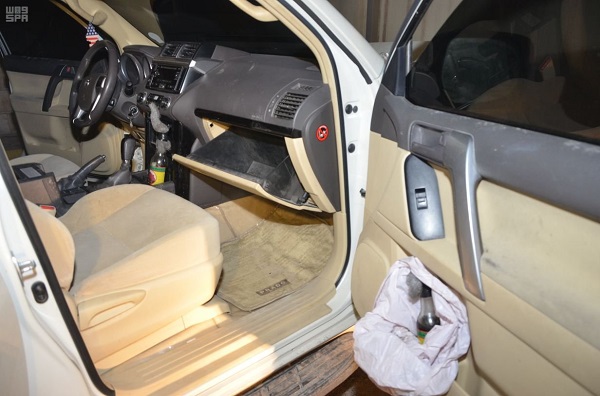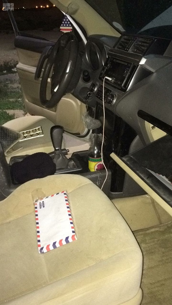 وقد عثر من تفتيش المركبة من نوع “برادو” التي استخدمها الجناة على قنابل مولوتوف واتضح أن السيارة مسروقة من مدينة الدمام بتاريخ 20 / 7 / 1437هـ، وبُدِلتْ لوحاتها من العناصر الإرهابية بالقطيف مع لوحات السيارة ، من نوع جيب “فورشنر”، التي كان يقودها المطلوب / مصطفى علي عبدالله المداد عند متابعته من قوات الأمن وتبادل إطلاق النار معه والمعلن عنه بتاريخ 11 / 6 / 1438هـ.