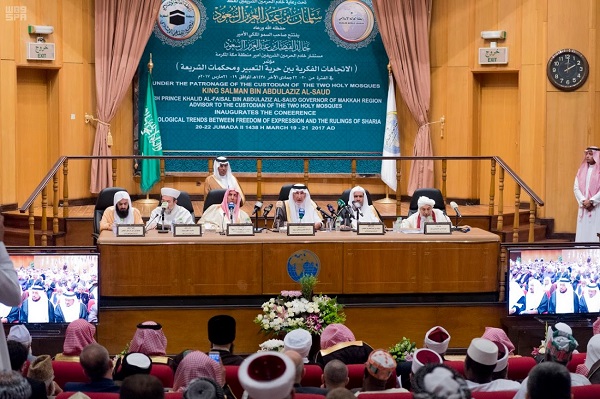 أكد خادم الحرمين الشريفين الملك سلمان بن عبدالعزيز آل سعود – حفظه الله – : حرص المملكة العربية السعودية على أن تقدم أنموذجاً يقتدى لحماية الحقوق والحريات المشروعة، وتحقيق الرفاه والتنمية الشاملة للمجتمع، بما يتوافق مع القيم الإسلامية، ويحافظ على الأمن المجتمعي والتألف بين أفراده، ويعزز التمسك بدينه، والثقة والوئام بين المواطن والمسؤول. جاء ذلك في الكلمة التي ألقاها نيابة عنه – أيده الله – صاحب السمو الملكي الأمير خالد الفيصل بن عبدالعزيز مستشار خادم الحرمين الشريفين أمير منطقة مكة المكرمة, اليوم في حفل افتتاح المؤتمر الدولي الذي تنظمه رابطة العالم الإسلامي ممثلة في مجمعها الفقهي بعنوان “الاتجاهات الفكرية بين حرية التعبير ومُحْكَمَات الشريعة”, وذلك في مقر الرابطة بمكة المكرمة وفيما يلي نص الكلمة : الحمد لله والصلاة على رسول الله [ أصحاب السماحة .. والفضيلة .. والمعالي .. والسعادة السلام عليكم ورحمة الله وبركاته يسعدني أن أنقل إلى جمعكم المبارك تحيات سيدي خادم الحرمين الشريفين الملك سلمان بن عبد العزيز ، وقد شرفني – يحفظه الله – بأن ألقي كلمته هذه في حفل افتتاح مؤتمركم الموقر . كما يسرني بداية أن أرحب بضيوفنا الأفاضل ، وهذا الحضور الزاخر بكم معاشر العلماء الراسخين في العلم ، وقد تداعيتم إلى أفياء أم القرى ، على أمر جلل للفصل فيه بما يحفظ على أمتنا رشدها ورشادها . الإخوة الأكارم .. (إن حرية التعبير التي يناقش مؤتمركم الاتجاهات الفكرية بينها وبين محكمات الشريعة ، إنما هي _ كما هو معلوم بالضرورة _ فرع أصيل من المفهوم الكلي للحرية (المشروطة) في الإسلام ، حيث خلق الله الناس أحراراً ، وتفضل عليهم بنعمه فأكرمهم ، قال تعالى : ” وَلَقَدْ كَرَّمْنَا بَنِي آدَمَ وَحَمَلْنَاهُمْ فِي الْبَرِّ وَالْبَحْرِ وَرَزَقْنَاهُم مِّنَ الطَّيِّبَاتِ وَفَضَّلْنَاهُمْ عَلَىٰ كَثِيرٍ مِّمَّنْ خَلَقْنَا تَفْضِيلًا ” (70 الأسراء) . ولا شك أن من كرامة الإنسان أن يكون من حيث الأصل ، حراً َ في التصرف والاختيار ، كما أن شريعتنا الإسلامية الغراء قضت بحفظ دم الإنسان وماله وعرضه ، فحررته من كل عبودية عدا عبوديته لخالقه ، شريطة التزام الإنسان بالضوابط التي شرعها _ سبحانه وتعالى _ بما يحقق صلاح حاله في دنياه وأخراه .