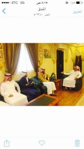كما استقبل المحافظ في نفس اليوم رجل الاعمال ” احمد العويفي ” بصحبته عدد من رجال الاعمال الذين قدموا للاطلاع على عدد من المشاريع الاستثمارية بالمحافظة والتي تمنح فرص استثمارية مميزة في محافظة المندق حيث تم الاطلاع على ملف الاستثمار الذي أعده محافظ المندق ويشتمل على إبراز عدد من المواقع الاستثمارية في كافة الأنشطة والجوانب .