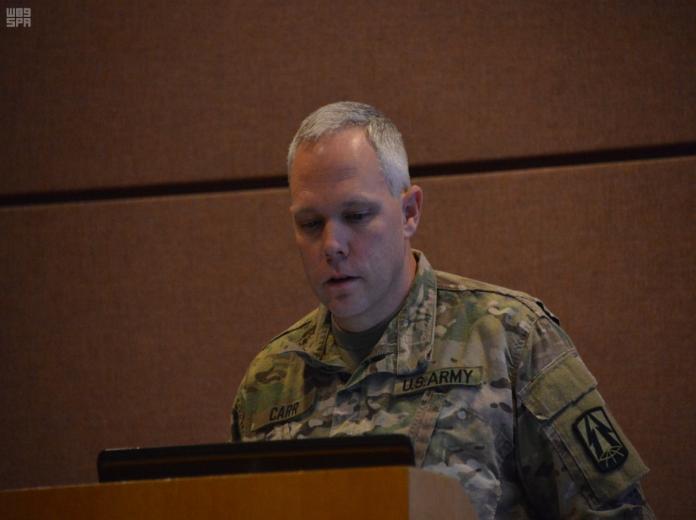 وقد ألقى المقدم الركن عبدالله العصيمي من القوات البرية المشاركة في التمرين محاضرة بعنوان: (دور القادة والأركان في التخطيط لعمليات الدفاع ضد أسلحة التدمير الشامل).