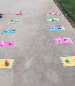 اما نشاط أكياس الأرز الملونة فقد جمعت مابين تنمية المهارات والجانب الرياضي فقد عملت على تعزز بعض المهارات الأساسية الرئيسية للطفل من ذوي الاحتياجات الخاصة أو الطفل السليم كالتأزر البصري والحركي في آن واحدة والتي عرضت بطريقة القفز .