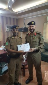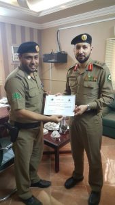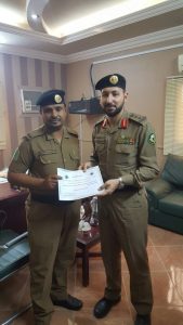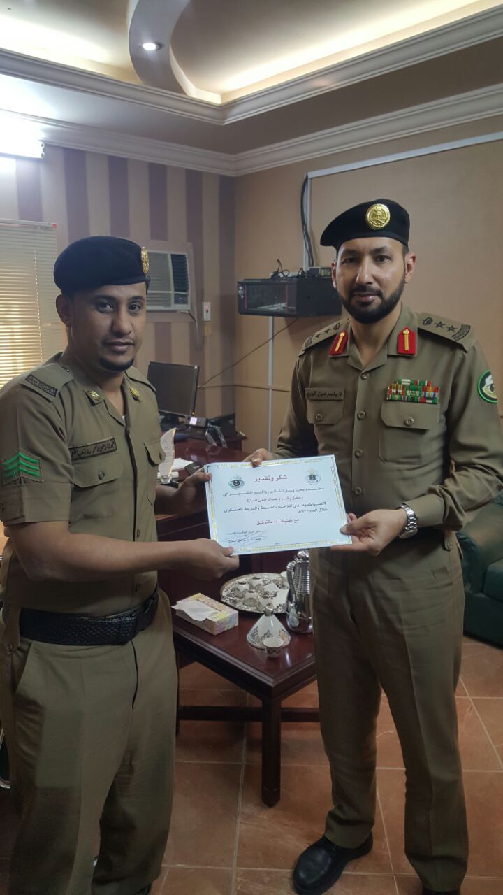 عقِبَ ذلك كرّم العقيد “البدري” الأفرادَ المُتَميّزينَ وشَمِل التّكريم كلاًّ من :- مديرَ وحدةِ مرورِ أضَمْ الرّقيب اوّل سعيد احمد الزهراني