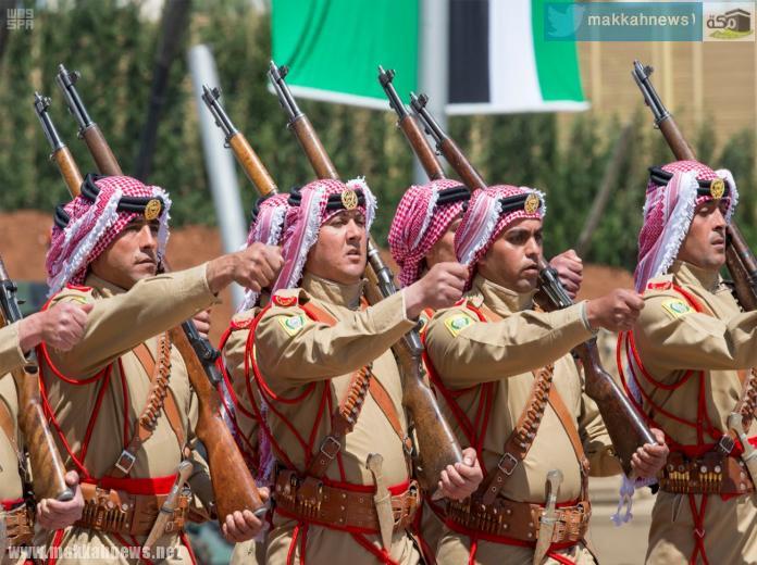 وفور وصول خادم الحرمين الشريفين والملك عبدالله الثاني ابن الحسين ملك الأردن، ميدان الراية رافقت الموكب مجموعة من فرسان الحرس الملكي الأردني، فيما أطلقت المدفعية 42 طلقة تحية بالمقدم الميمون للملك.