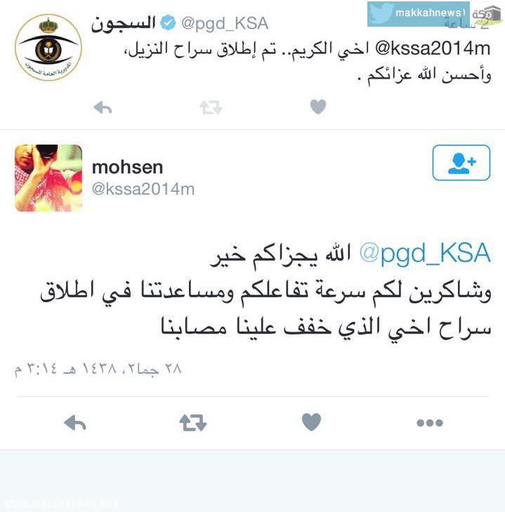 تجاوبت إدارة سجن الملز في العاصمة الرياض مع تغريدة مواطن وأنهت معاناة ذوي نزيل في قضية مطالبات مالية في أقل من 60 دقيقة، بعدما قامت أسرة الموقوف بسداد جميع المستحقات المالية الموقوف من اجلها.
