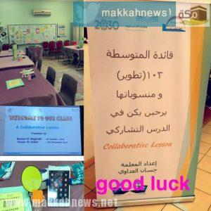 كانت فكرة الدرس التشاركي تجربة رائعة و مميزة تكللت بالنجاح والحمد لله اثبتت فيها الطالبات مدى قدرتهن على العطاء المبهر باستخدام وسائل التقنية الحديثة و تجسير الفجوة بين المرحلتين المتوسطة والثانوية